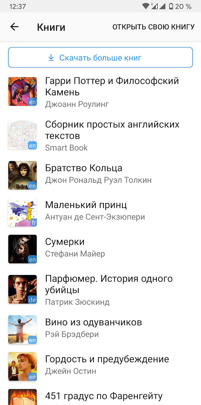 ๐ In the app you can open any of your books in any language in fb2, epub or txt formats. You can download books from any website and read them in Smart Book.