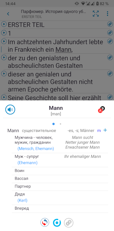 ๐ When you click on any word you will see a short list of its translations. It can be spoken or added to the built-in dictionary for repetition or export to Anki, reWord, Smart Dictionary and other applications.